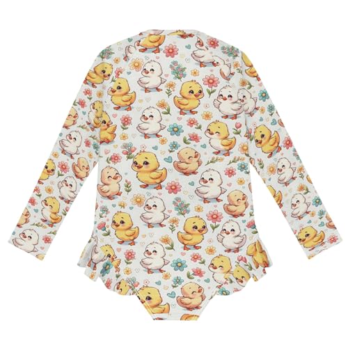 Little Cute Duck Cartoon Flower Girls Long Sleeve Swimsuit Rash Guard One Piece Bathing Suits Zipper 3-12T 4