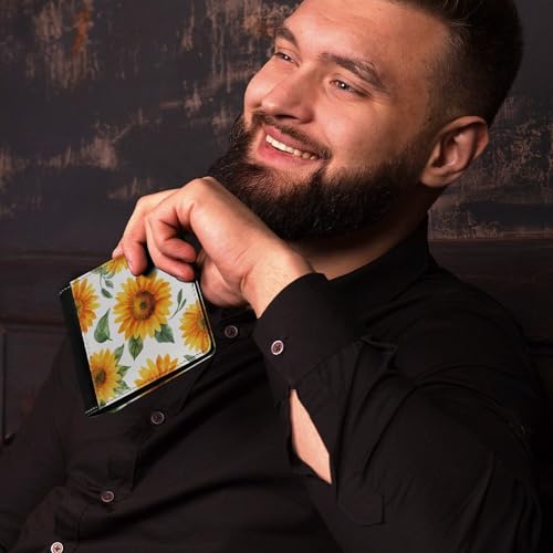 Watercolor Sunflower Floral Farmhouse Soft PU Leather Bifold Wallet, Coin Purse Credit Pass Case, Durable Card-Holder Slim Billfold for Men Woman Money Storage 6