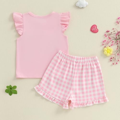 More information about Toddler Baby Girl Farm Outfit Country Animal Flying Sleeve Tank Top Girls Plaid Shorts Set 2Pcs Kids Summer Clothes