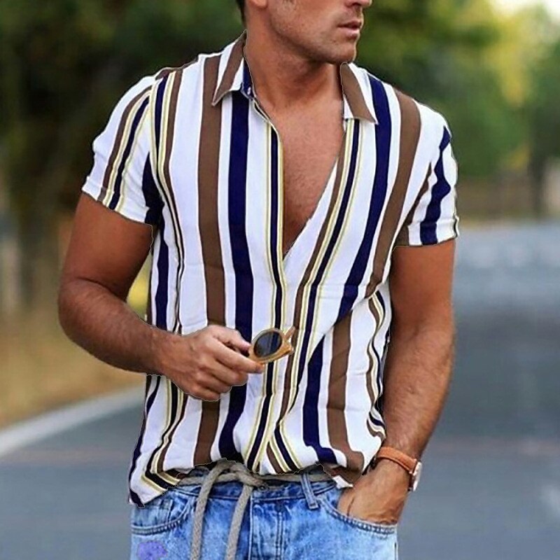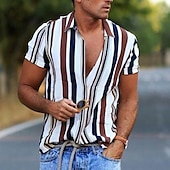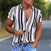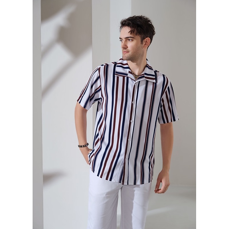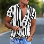 Highlights - Look stylish and passionate with our Men's Printed Shirt, featuring buttoned shirt style cuffs perfect for a beach look. - Our high-quality fabric is breathable, soft, and moisture-wicking, keeping you comfortable throughout the day without ever fading, cracking, peeling, or flaking. - Designed for all ages, our shirt is suitable for various occasions such as swimming, surfing, walking, gym, BBQ, and more. It's a perfect gift for your loved ones. - Easy to care, our shirt can be hand wash or machine wash in cold water and hangs dry for a longer-lasting product. - Please refer to the size information in the product description to choose the best fit. Our Men's Printed Shirt is a great addition to your summer wardrobe, featuring short sleeves, a designer style, and a striped pattern.
