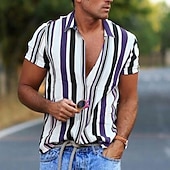 More information about Men's Striped Geometric Pattern Shirt Button Up Shirt Short Sleeve Fashion Designer Casual Outdoor Daily Summer Collar Print Button-Down White Blue Purple Brown Gray