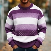 More information about Men's Stripe Pullover Sweater Jumper Knitwear Crewneck Casual Vacation Street Daily 3D Print Knitting Keep Warm Long Sleeve Spring Fall Winter Blue Purple Brown