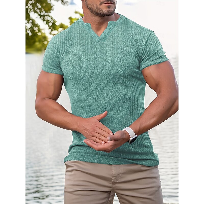 This Men's T Shirt Muscle Shirt Ribbed Knit tee Tee Top Short Sleeves V Neck Summer Plain Textured Pit Strip Fashion Designer Sporty Ribbed Vacation Street Casual Light Blue Black Light Green Top Tee for combines elegant design with practical functionality. Every detail has been carefully considered to ensure you get the supreme possible experience. The top-grade construction means this product will serve you well for years to come.