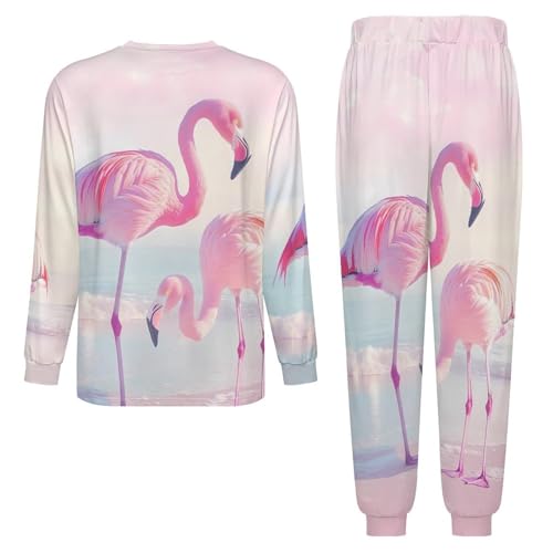 Flamingo Beach Mens Pajamas Set Long Sleeve Sleepwear Pjs Set Shirts And Bottoms Sleep Sets Loungwear 2
