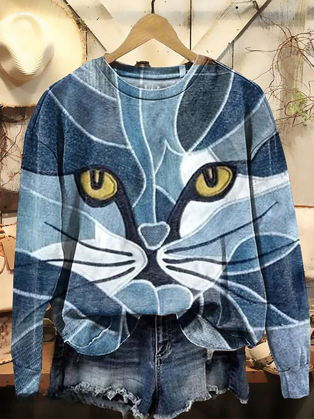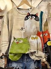 More information about Women's Pullover Sweatshirt Graphic Animal Fashion Basic Casual Long Sleeve Crew Neck Regular Tops Street Dailywear Casual Print Blue Brown Khaki Beige Fall Winter