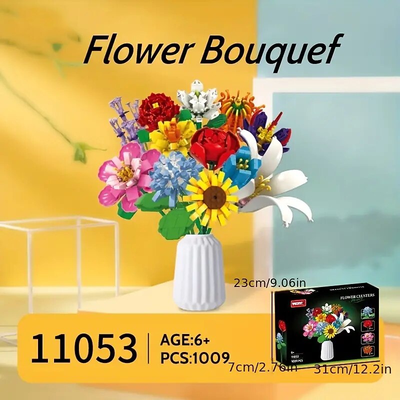 HOT ! Women's Day Gifts Building Blocks Bouquet Small Particles Of Immortal Roses Girls Puzzle Assembled Flower Toys Girls Series Valentine's Day Gift Mother's Day Gifts for MoM