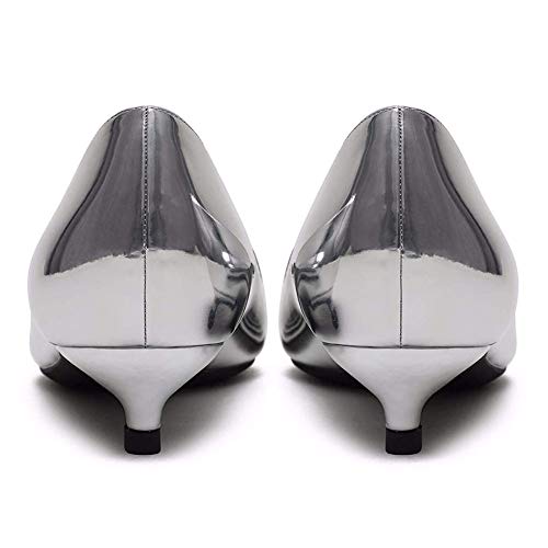 Women's Patent Leather Slip On Pointed Toe Ultra Low Kitten Heel Basic Dress Pumps Shoes 5