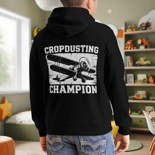 Kids Vintage Cropdusting Champion Boys Girls Lightweight Kangaroo Pocket Fleece Hoodies 6