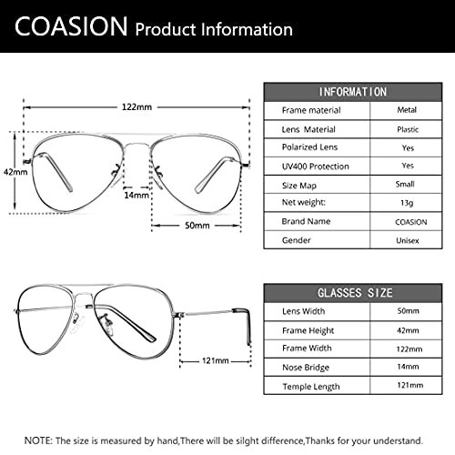 Origin: ImportedPremium Material: Lightweight metal frame featuring scratch-resistant lenses, and adjustable soft silicone nose pads, very comfortable and durableFull UV Protection: Protect childrenβs eyes against harmful UV rays. UVA and UVB ultra violet blocking lenses with added polarization can eliminate glare while maintaining color integrityKids Halloween Gift: Pilot sun glasses are timeless and timeless. Super light and anti-skid design makes these sunglasses perfect for little girls and boysClassic Design: Look sharp with the authentic styling of these pilot sunglasses. Small aviator frame enhance legendary aviator styling with important protection benefitsDimensions - Lens Width: 50 mm, Frame Height: 42 mm, Nose Bridge: 14 mm, Frame Width: 122 mm, Temple Length: 121 mm, Net Weight: 13 g Perfect for everyday use. top-grade materials and excellent craftsmanship ensure long-lasting durability.