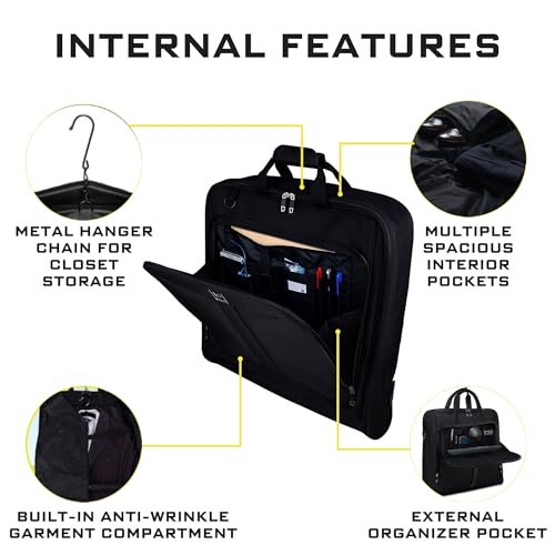 Premium Suit Garment Bag Carry On - Hangs 4 Suits - Travel & Business with Shoulder Strap and Laptop Compartment 5