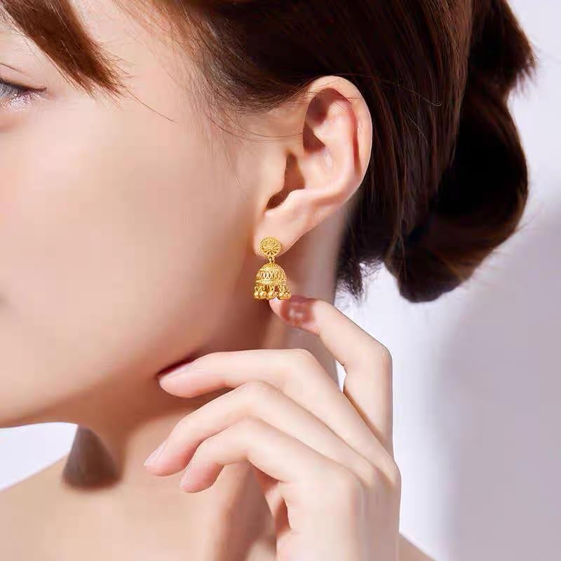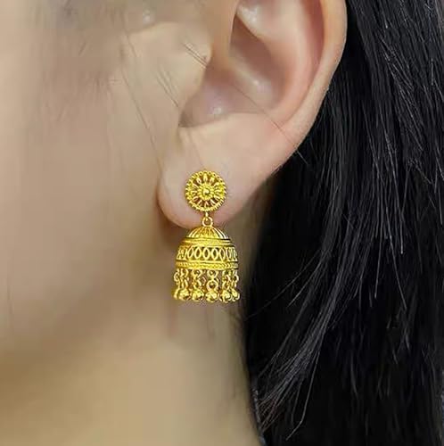 HOT ! Gold Indian Jhumki Bell Vintage Statement Stud Earrings for Women Retro Ethnic Bohemian Hollow Jhumka Round Bells Tassel Dangle Drop Earring Bollywood Traditional Boho Gypsy Studs Jewelry Gift