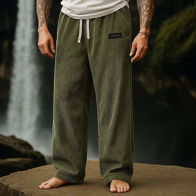 sizzling ! Men's Corduroy Pants Trousers Slacks Casual Pants Drawstring Elastic Waist Front Pocket Plain Comfort Full Length Outdoor Vacation Home Vacation Fashion Loose Fit Green Stretchy