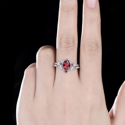 1.5CT Pear/Oval Cut Created Ruby Ring Sets for Women 10K 14K 18K Gold Gemstone Ruby Inspired Anniversary Ring for Wedding Valentine's Day Size 4-12 2