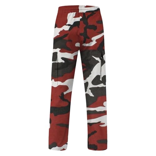 HOT ! Cargo Pants for Men Big and Tall Multi Pockets Camouflage Sweatpants Lightweight Camo Elastic Waist Straight Trousers