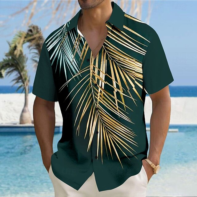 HOT ! Men's Palm Tree Tropical Plants Shirt Summer Hawaiian Shirt Button Up Shirt Short Sleeve Hawaiian Resort Vacation Holiday Beach Wear Summer Turndown 3D Print Collared Shirts Front One Pocket Dark