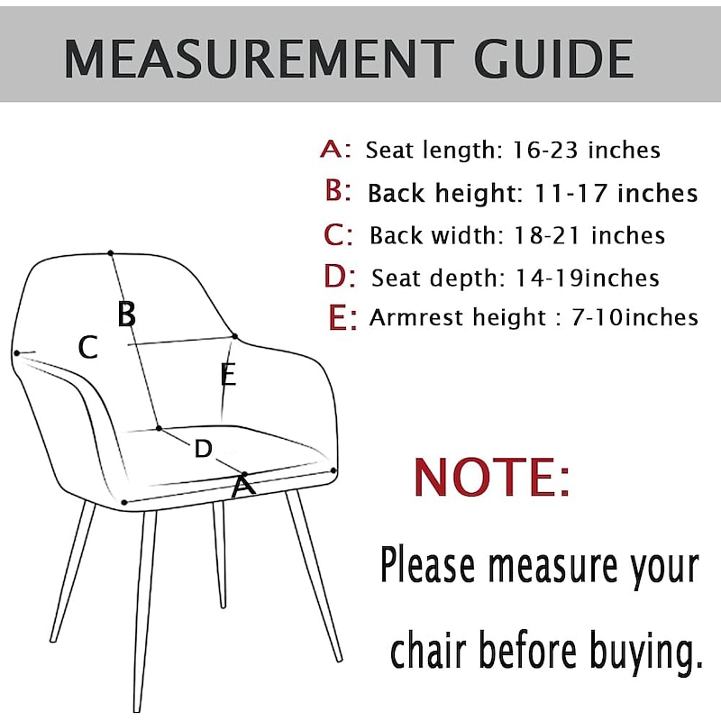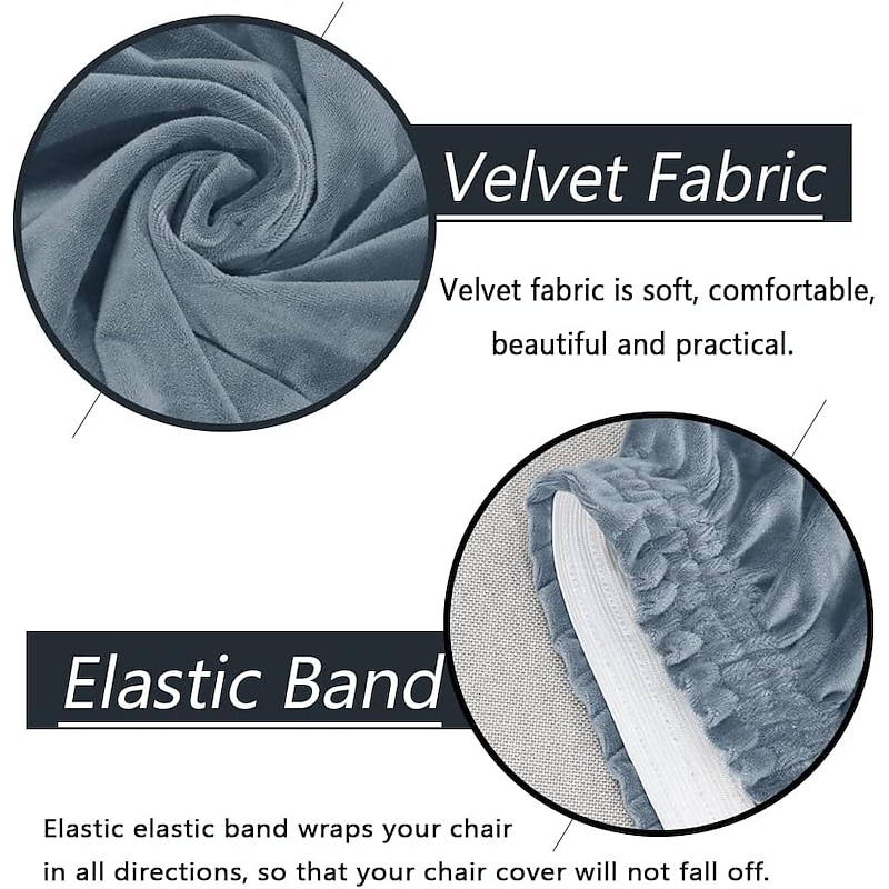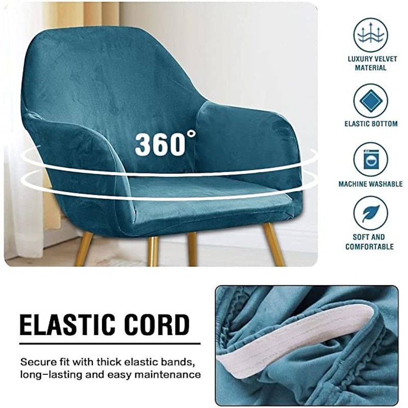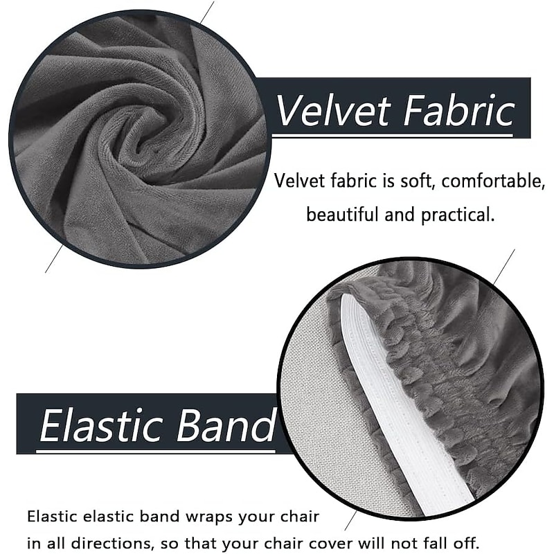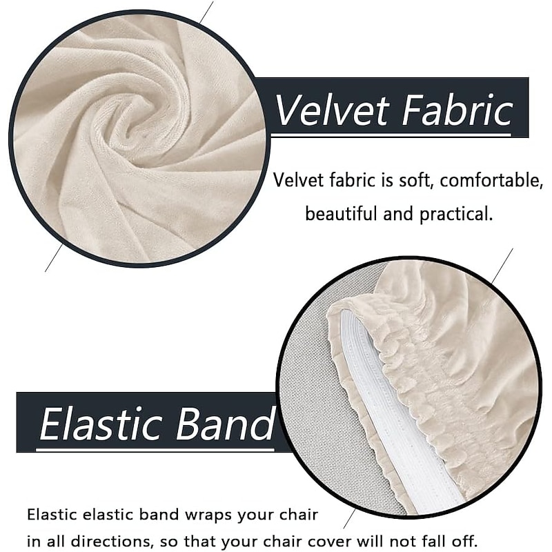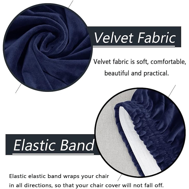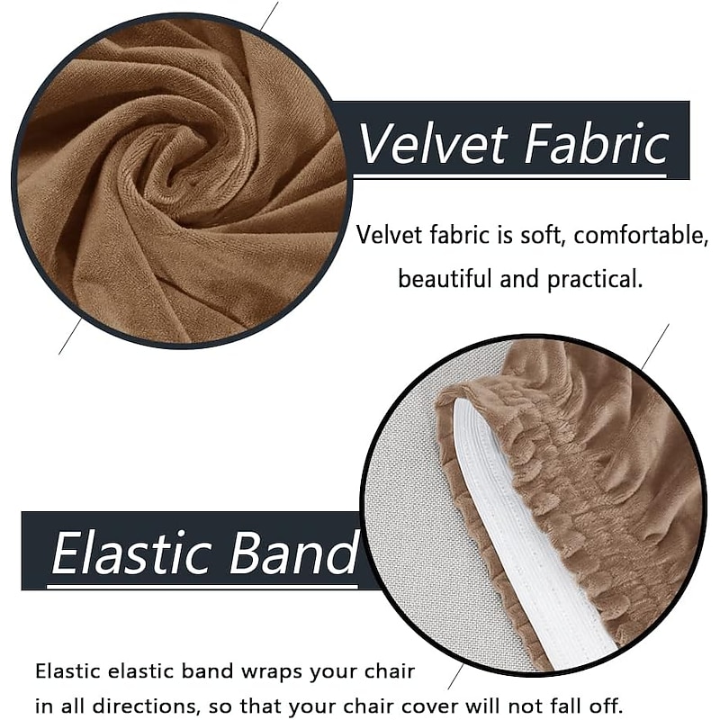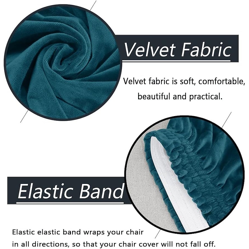 Highlights About this item: 1. 【Stretchy & Soft Velvet Fabric】Only Covers These high-quality dining chair slipcovers are made of super great velvet fabric. Our velvet fabric is solid and durable, yet feels soft, silky and supple. With multiple color choices, our velvet is treated with fine dyeing process, and it keeps away from fading and pilling. 2. 【Wide Range of Applications】Protect your chairs from dust, spills, stains, wear, fading and tear. A quick and budget friendly way to update furniture to fit your evolving decor. Recommended for dining room, home, hotel, wedding banquet, dinner, meeting, celebration, ceremony 3. 【Easy Care & Install】Curved back dining chair cover can machine washable in cold water. Wash separately at gentle cycle, do not use bleach and iron. Easy to set up, just wrap around furniture and tuck into cushions for a fitted look and feel. DETAILS DETAILS FIT TYPLE EASY CARE