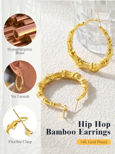 U7 Bamboo Earrings for Women 18K Gold Plated/Stainless Steel/Personalized Black Statement Extra Large Hoop Earrings 80s 90s Custom Name Huggie Earrings for Party Fashion Jewlery 5