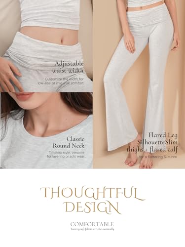 Motarto Women's 2 Piece Lounge Sets Short Sleeve Slim Fit Foldover Flare Pants Crop Top Casual Loungewear PJ