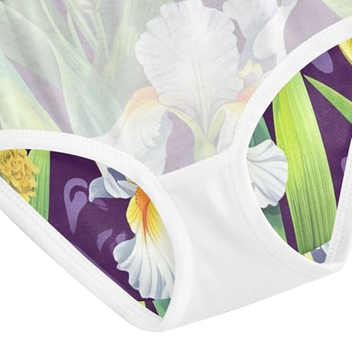 White Iris Flowers Green Leaves Purple Panties for Girl Toddler Underwear Floral Cotton Fun Briefs Underpants 2t 5
