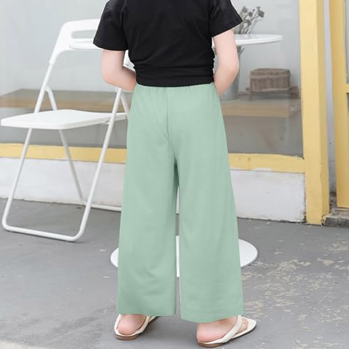 Girls Ice Silk Wide Leg Summer Pants Casual Elastic Waist Loose Comfy Workout Trousers with Pockets for Kids 2-14 Years 5