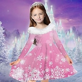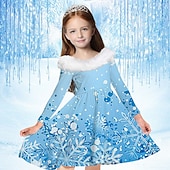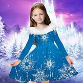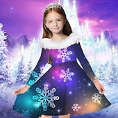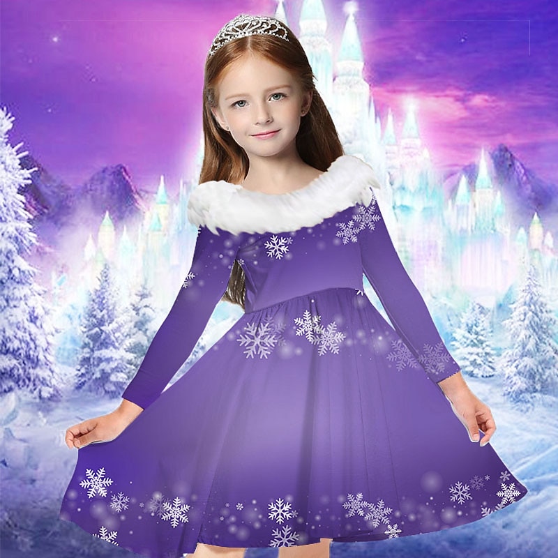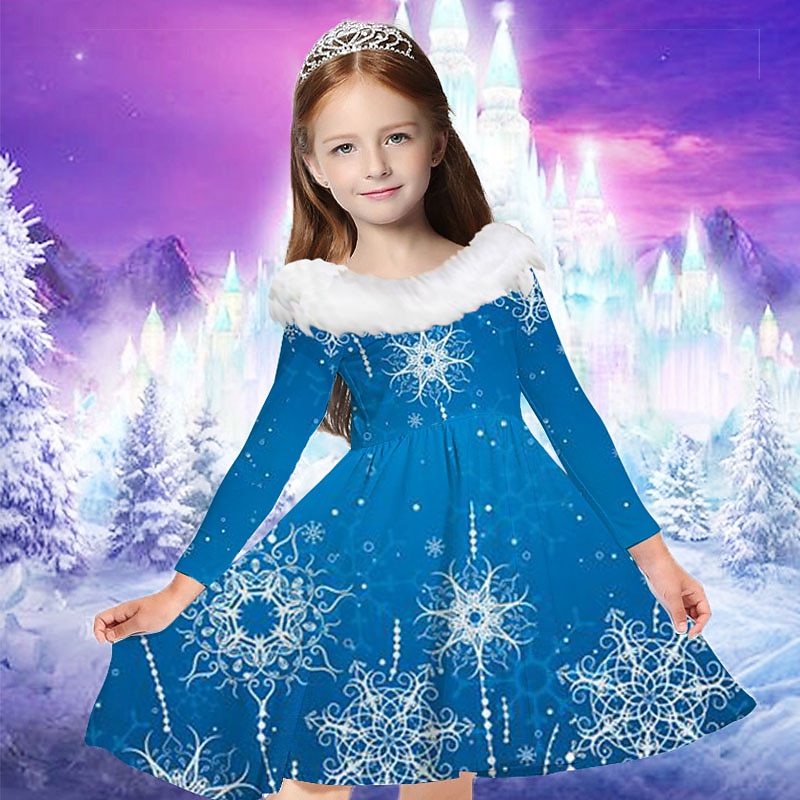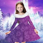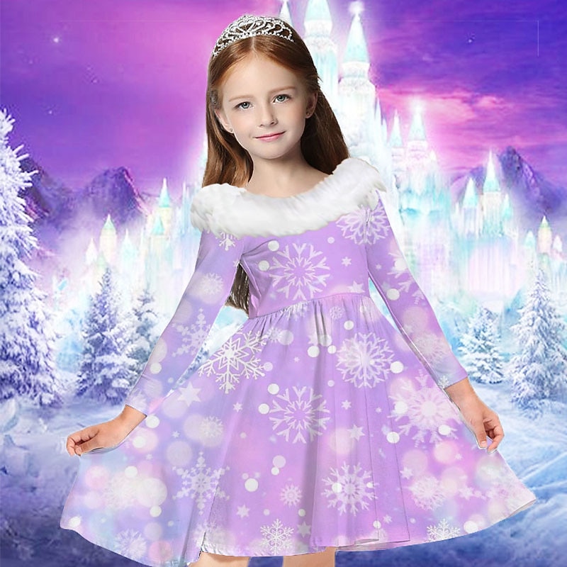 More information about Kids Girls' Dress Snowflake Dress Snowflake Long Sleeve Casual Fur Trim Crewneck Adorable Daily Polyester Above Knee Casual Dress Swing Dress A Line Dress Fall Winter 2-13 Years Multicolor Champagne