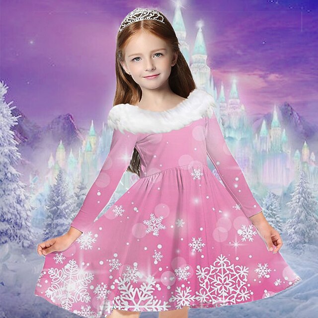 Kids Girls' Dress Snowflake Dress Snowflake Long Sleeve Casual Fur Trim Crewneck Adorable Daily Polyester Above Knee Casual Dress Swing Dress A Line Dress Fall Winter 2-13 Years Multicolor Champagne 17