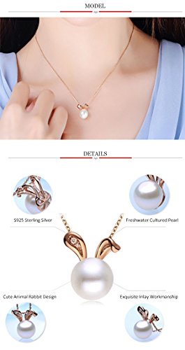 More information about Easter Bunny Rabbit Pendant Cultured Pearls Necklace for Women Teen Girls S925 Sterling Silver Delicate Animal Jewelry Gifts for Daughter