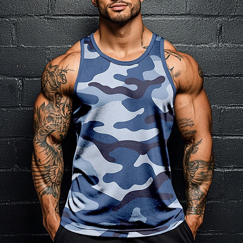 Men's Camo Camouflage T Shirt Vest Top Sleeveless T shirt 3D Print Crew Neck Shirt Vacation Casual Hawaiian Holiday Green 1# Green 2# Blue 2# Summer Spring Clothing Apparel S M L XL XXL XXXL 3