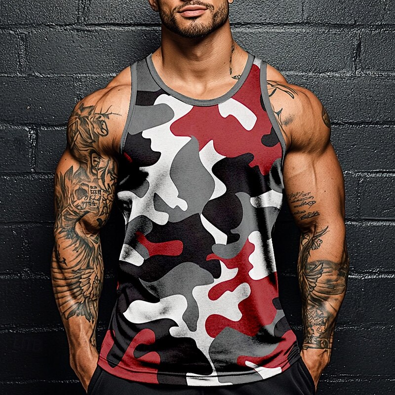 Men's Camo Camouflage T Shirt Vest Top Sleeveless T shirt 3D Print Crew Neck Shirt Vacation Casual Hawaiian Holiday Green 1# Green 2# Blue 2# Summer Spring Clothing Apparel S M L XL XXL XXXL 1