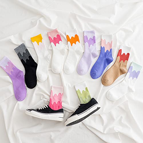 • Ice Cream Rainbow Socks:Elastic cuff label designed for special stretch and recovery,thicker yarn is used on all soles and reinforced toe to make socks more durable and comfortable in high wear zones.