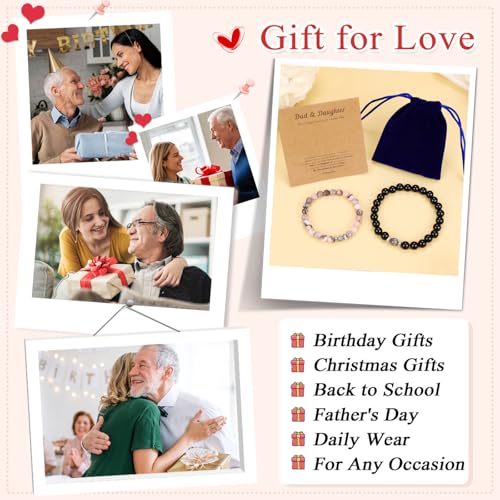 • Size and Packaging: Each set includes an 8mm father bracelet (7.5inch) and a 6mm daughter bracelet (6inch) with an elastic design that makes them comfortable to wear and suitable for different wrist sizes. The bracelet comes with a beautiful packaging box and exclusive card to make your love better convey