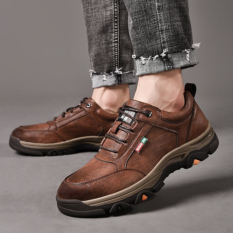 HOT ! Men's Brown Faux Leather Outdoor Hiking Shoes – Durable Non-Slip Lace-Up Sneakers for Trekking, Camping & Casual Wear