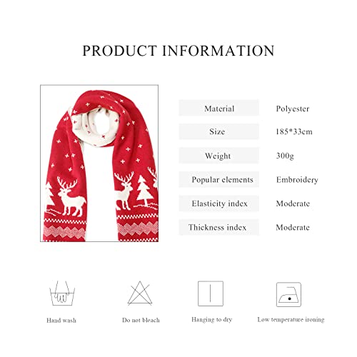 • VERSATILE ACCESSORIES: Winter is not just synonymous with cold, there are also dreams and fairy tales. The jacquard of Fair Isle elements is elegant and retro, with reindeer Christmas tree elements, full of rich Christmas style. Use a scarf to embellish the beauty in dream days, showing the style and beauty of autumn and winter. A Christmas themed scarf will keep you warm all the way.