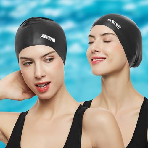 HOT ! Aegend Swim Caps for Long Hair, Durable Silicone Swimming Caps for Women Men Adults Youths, Easy to Put On and Off, Waterproof Swim Hats Bathing Caps to Keep Hair Dry