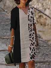 More information about Women's Casual Dress Ethnic Dress Shift Dress Midi Dress Leopard Black White Half Sleeve Floral Print Summer Spring V Neck Basic Daily Vacation Weekend 2023 S M L XL XXL 3XL