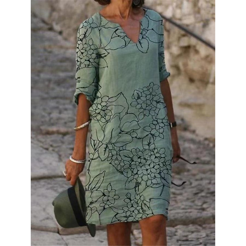 Women's Casual Dress Ethnic Dress Shift Dress Midi Dress Leopard Black White Half Sleeve Floral Print Summer Spring V Neck Basic Daily Vacation Weekend 2023 S M L XL XXL 3XL 26