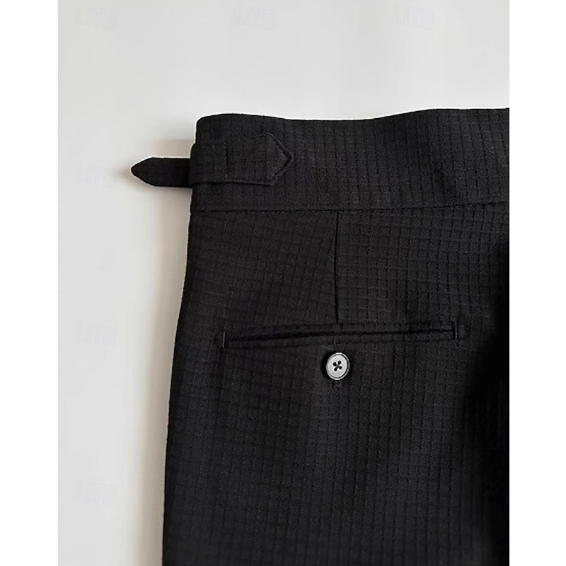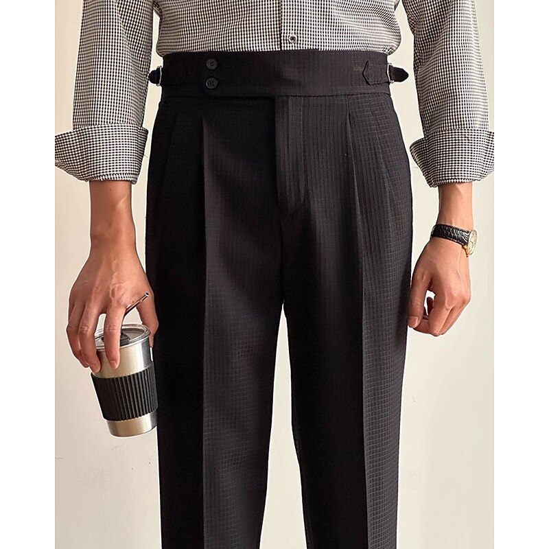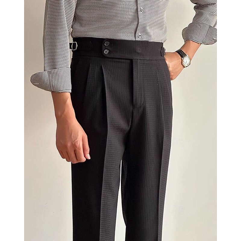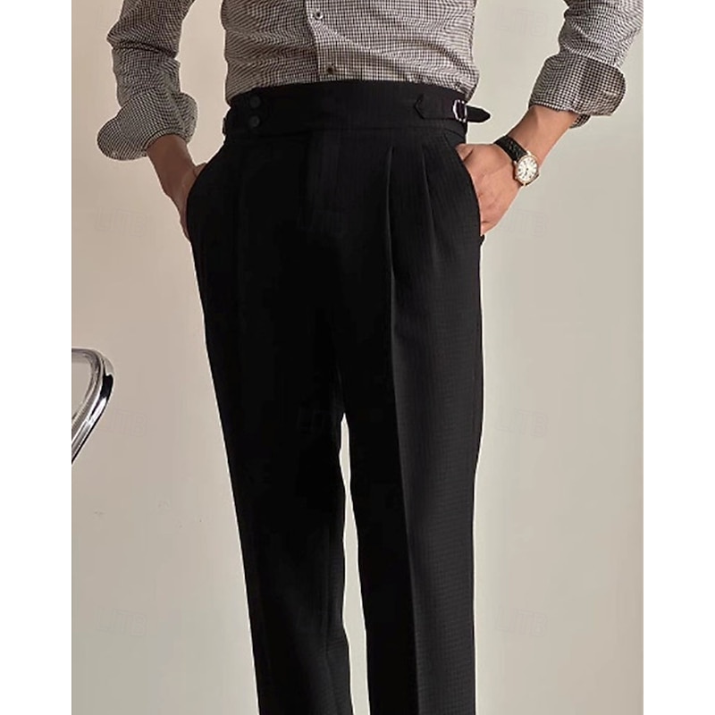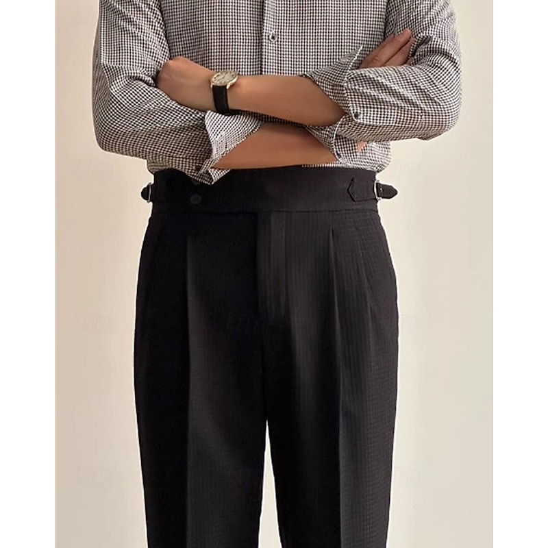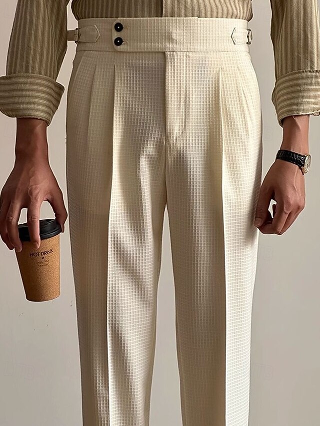 More information about Men's Waffle Graduation Dress Pants Naples Trousers Trousers Buttons Pocket Solid Colored Comfort Formal Party Work Fashion Classic Style Black White Micro-elastic