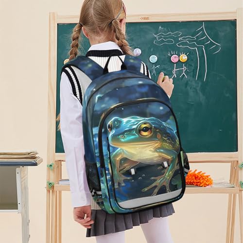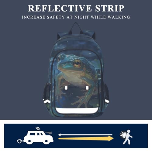 Cute Frogs Pond Leaves Backpack for Boys Girls Kids School Bag Lightweight Laptop Backpack Elementary Capacity Bookbags for Travel Daypack with Reflective Stripes 7