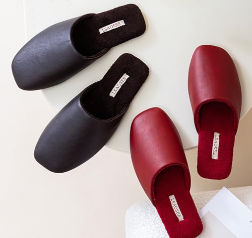 • Premium Comfort & Durability: Experience enduring comfort with our elegant slippers! Crafted from soft yet durable materials—quality PU leather and plush fabric, they feel gentle on your feet while resisting everyday wear and tear
