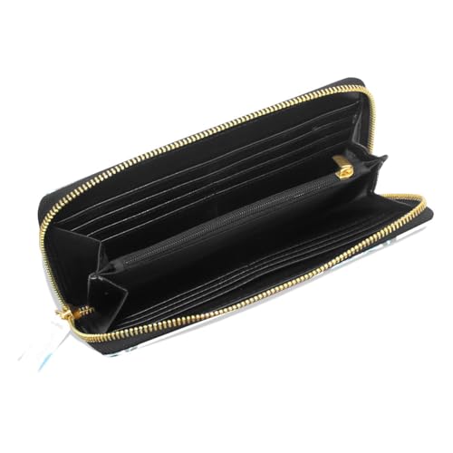 Long Wallets Leather Bifold Wallet for Women Blue Puppy with Zipper Credit Card Holder Large Capacity
