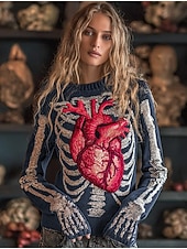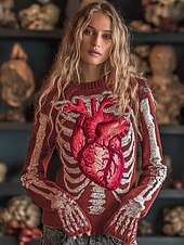 More information about Halloween Women's Sweater Skeleton Cute Streetwear Casual Graphic Skeleton Crew Neck Patchwork Knitted Long Sleeve Regular Tops KnitBlack Red Fall Winter