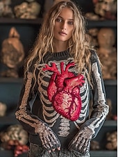 Halloween Women's Sweater Skeleton  Cute Streetwear Casual Graphic Skeleton Crew Neck Patchwork Knitted Long Sleeve Regular Tops KnitBlack Red Fall Winter 10