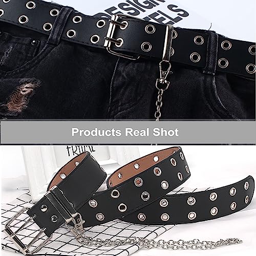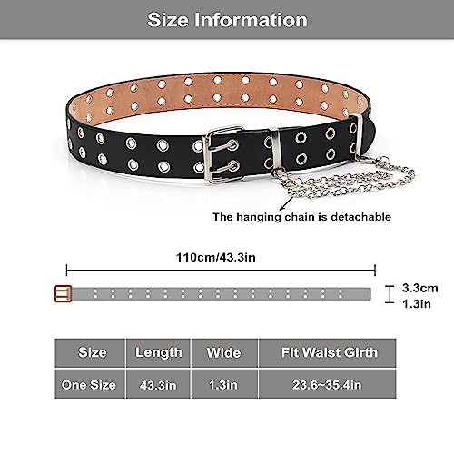 More information about Grommet Leather Belts Y2K Punk Waist Belts Rock Niche Design Belt with Detachable Chain for Women