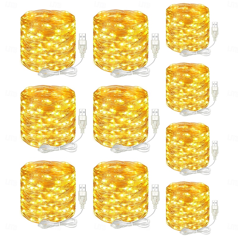 10 Pcs 5M/16.4FT 50 LED Beams Fairy String Lights Halloween Christmas Valentine's Day New Year Wedding Party Festival Indoor and Outdoor Decoration Copper Wire Lights USB Power Supply IP44 Waterproof 20