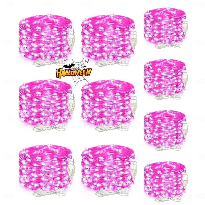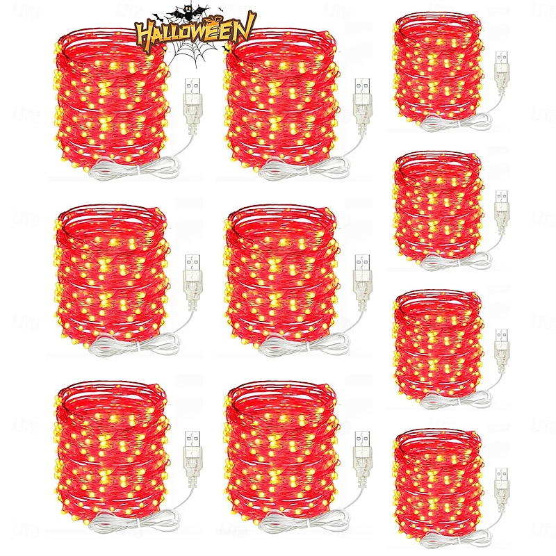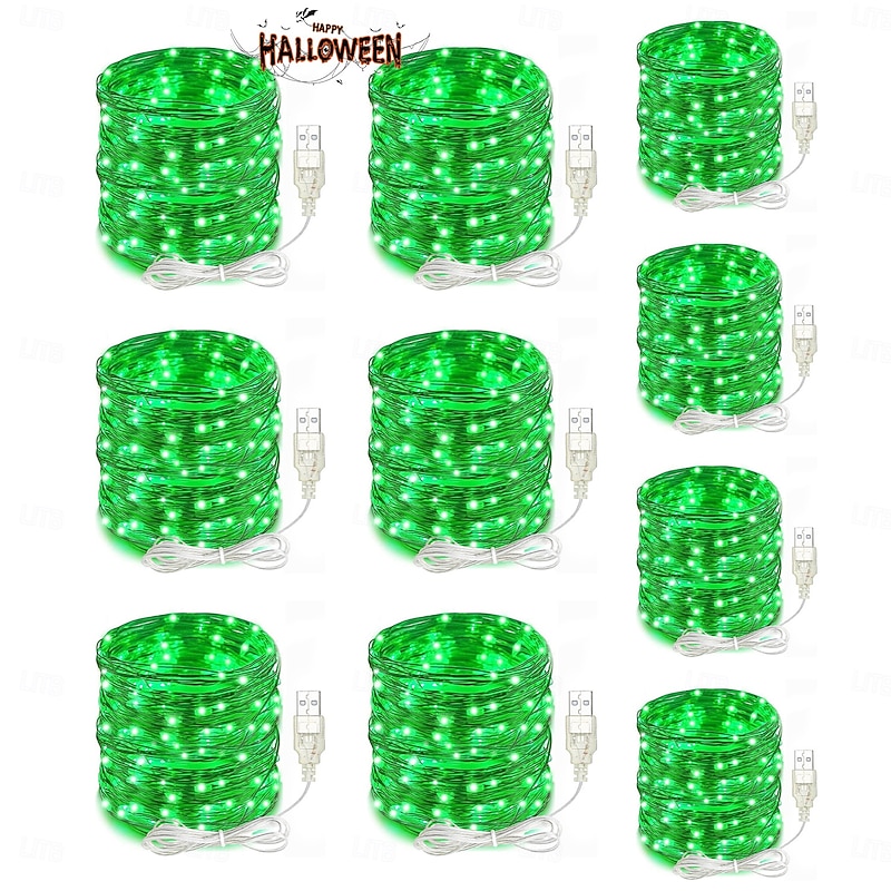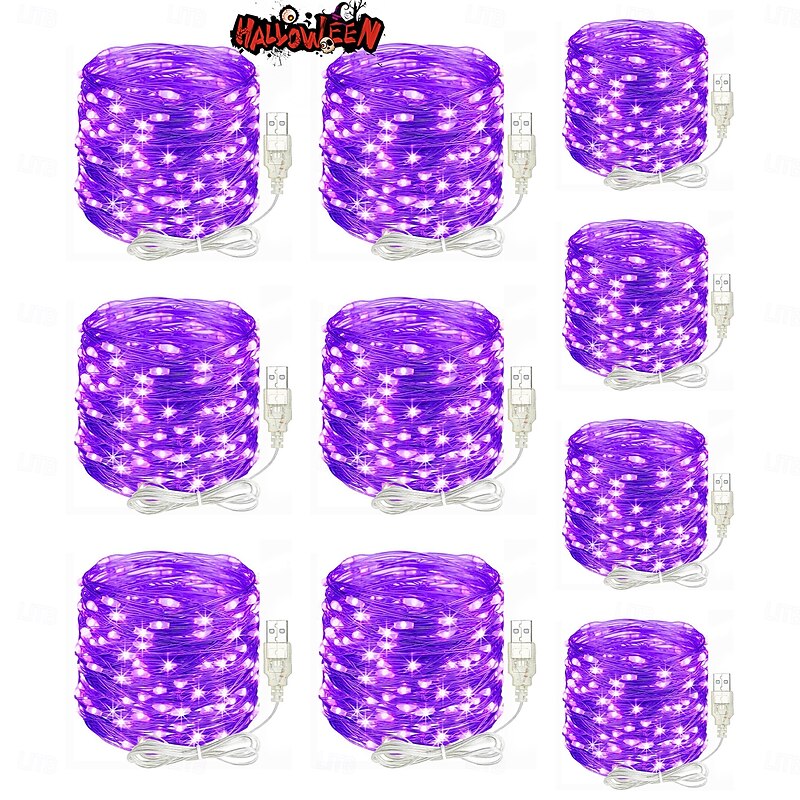 10 Pcs 5M/16.4FT 50 LED Beams Fairy String Lights Halloween Christmas Valentine's Day New Year Wedding Party Festival Indoor and Outdoor Decoration Copper Wire Lights USB Power Supply IP44 Waterproof 31