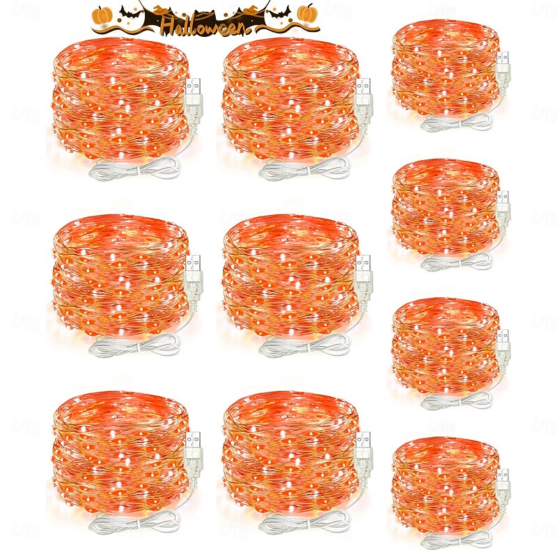 10 Pcs 5M/16.4FT 50 LED Beams Fairy String Lights Halloween Christmas Valentine's Day New Year Wedding Party Festival Indoor and Outdoor Decoration Copper Wire Lights USB Power Supply IP44 Waterproof 19