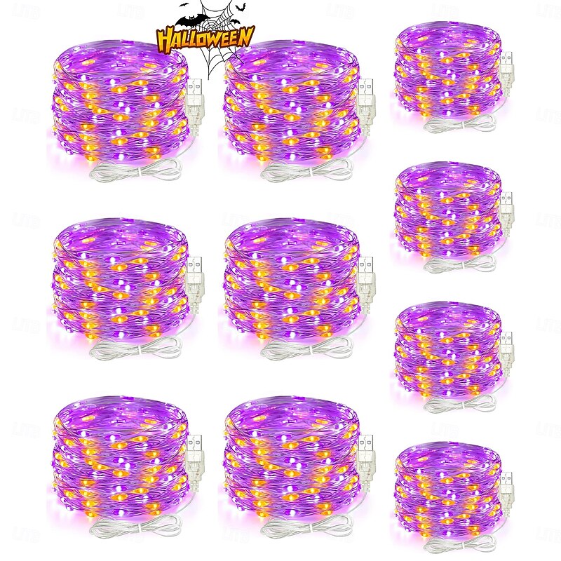 10 Pcs 5M/16.4FT 50 LED Beams Fairy String Lights Halloween Christmas Valentine's Day New Year Wedding Party Festival Indoor and Outdoor Decoration Copper Wire Lights USB Power Supply IP44 Waterproof 29