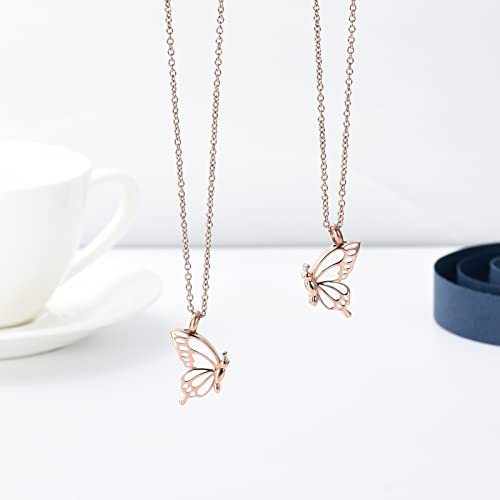 constantlife 2 Pack Butterfly Urn Necklaces for Ashes for Women Girls Stainless Steel Pendants Cremation Keepsake Jewelry Mother Daughter Sister Friendship Memorial Gifts