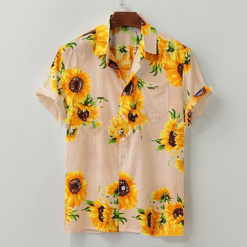 Highlights - Designer men's summer shirt with a beautiful sunflower graphic print - Short sleeve for perfect summer comfort - Trendy and unique turndown neckline - Made from high-quality materials for durability and long-lasting wear - A great addition to any stylish man's wardrobe - Perfect for casual outings or dressy occasions - Eye-catching sunflower design adds a touch of summer to any outfit
