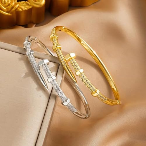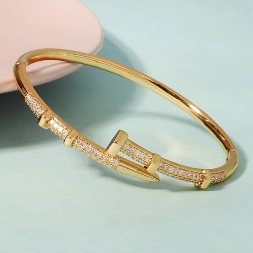 Nail Bangle Bracelet for Women 18K Gold Plated Cubic Zirconia Stones Titanium Steel Bracelet Jewelry Valentines Christmas Gifts 1